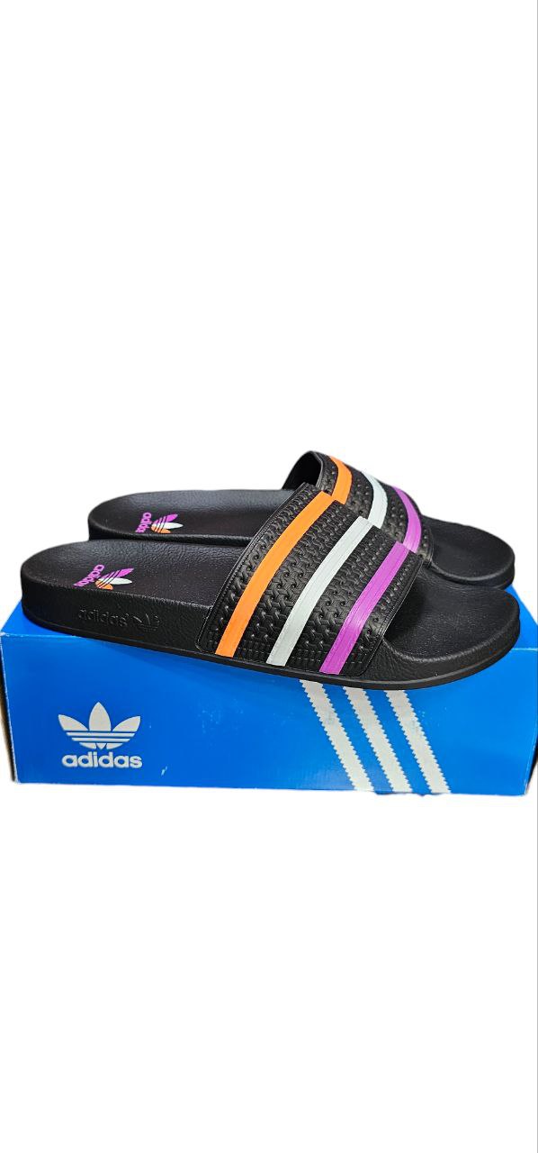 ¡Atrévete a destacar con estas Adidas Adilette Tricolor en negro! 🌈