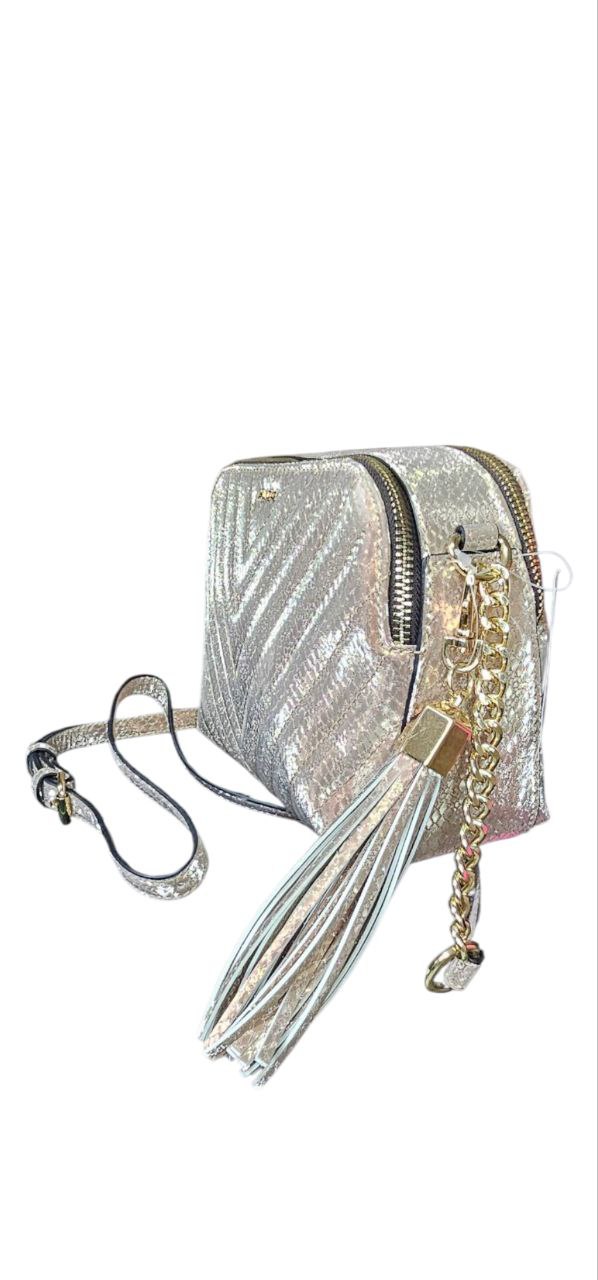 Esta bolsa crossbody de ALDO es el toque perfecto de glamour para cualquier outfit. Con un acabado brillante e iridiscente que capta la luz desde cualquier ángulo, su diseño presenta un patrón en V con textura tipo piel de serpiente. Incluye una correa ajustable para llevarla al hombro o cruzada, y un elegante adorno de cadena dorada con colgante decorativo.