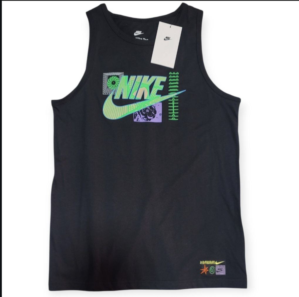 Esta tank top Nike Kids viene cargada con un diseño psicodélico brutal en colores neón verde, morado y aqua que te hará destacar en cada paso 💥🌈